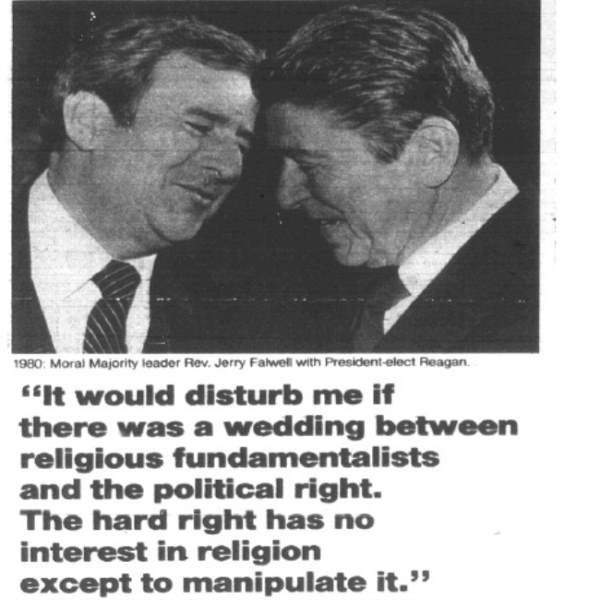 "I don't want to see religious bigotry in any form...it would disturb me if there was a wedding between the religious fundamentalists and the political right. The hard right has no interest in religion except to manipulate it."